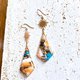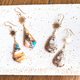 将金色的太阳零件与网状铜饰结合,再衬以美丽的天然石,打造出充满夏日气息的耳环。
