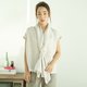 https://youtube.com/shorts/1p2VJQ2b7jo?feature=share 这款短袖上衣采用纯亚麻的天然纤维,透气性佳,着感舒适。前襟附有绑带设计(上方影片有绑带教学),可随兴披散或将衣摆扎入裤装/裙装,皆能展现不同风格。 颜色:浅灰色 Free size (均码) 胸围:44寸 肩宽:15寸 袖长:3.5寸 衣长:23寸 模特儿身高 163 厘米,胸围 32 寸,腰围 24 寸,臀围 35 寸。