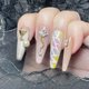 *材质:日制PRESTO专业用指甲凝胶、 好宾喷枪压克力颜料、 施华洛元素亮钻,仿珍珠及镀金小饰品。
