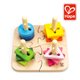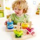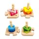 底部有松紧带,让我们把不同形状的几何积木放入到对立的孔位柱中,