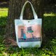 以老猫疗养院故事中, 主角米娜和老猫达利第一次相见的插画制作而成的帆布袋, 适合当外出购物袋或上班族/小朋友的便当袋。