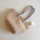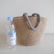 A simple round-bottom hemp string bag with a thin blue-gray handle that gives a gentle and calm impression.