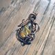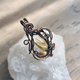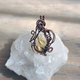 钛晶吊坠。线材为纯铜线仿旧处理。整体尺寸(长x宽)为35x22mm。