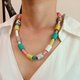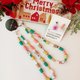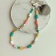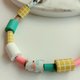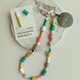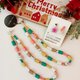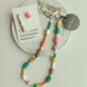 此项链属于Connettere的短链。它混合了不同形状、大小、图案和颜色的珠子。这些珠子用白色棉绳编织和打结,并以纸珠勾作为装饰收尾。缤纷色彩搭配,让它有着少女粉嫩愉悦的甜美感。