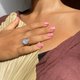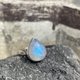- 这款迷人的银戒指上镶有一颗迷人的月光石,月光石以迷人的色彩和空灵的光芒而闻名。梨形月光石闪烁着蓝色和彩虹色的白色,营造出一种似乎随着光线而变化的神奇效果。这款戒指镶嵌在光滑的银戒上,融合了优雅和神秘,是完美的配饰