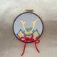 The embroidery hoop is painted dark brown with beeswax to match the atmosphere of the Kabuto’s design. You can enjoy the details of hand-embroidery from the backside as well.