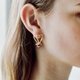 It's a one-touch earring with a pretzel heart motif. It is a three-dimensional one-touch style that connects a unique body like a Mobius belt and a snowball with a line as a point, and is designed to create a variety of moods depending on the angle. Watch the sparkle of everyday life with pretzel heart snowball earrings.