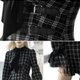 保暖舒适格子面料 庞克皮质金属扣 领口灵动长飘带 蝴蝶结装饰公主袖