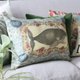 这款航海主题的靠垫采用 John Derian 创作的原创艺术品,正面以鲸鱼为特色,周围环绕着珊瑚图案,背面则是一艘被蝴蝶包围着的美丽帆船。以采用数位印刷印于棉/亚麻混纺面料。