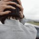 你把外套拉开,这件高领卫衣自然地贴合在身上——