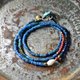 半透明的蓝色和靛蓝色珠子是称为“印度太平洋珠”(Indo-Pacific Beads) 的古董珠。印度太平洋珠的起源可追溯至西元前二世纪。这些珠子是从印尼出土的,年代竟可达西元十世纪,也就是一千多年前的古物!
