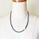 这是一条由纳加族古董珠、非洲出土玛瑙、金赤怀旧心形珠、蓝色与靛蓝色珠子、旧奥里萨黄铜等串连而成的项链。