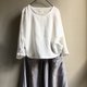 以远山绿亚麻订做/纯净森林/米色七分袖简洁上衣
