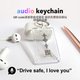 - 随身带着的钥匙圈也随身带着彼此的爱。通过音频钥匙圈,扫码就可以听到她/他的话语。“开车小心喔”“爱你”简单的一句叮咛和话语,让她/他知道,有人在家等待,爱也时刻伴随。 可以订制定制好的照片文字和录音。也可以自己DIY体验制作爱心礼物的乐趣。