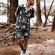 丑小鸭 复古衬衫 蓝绿色印花