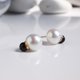 这款耳针式耳环与耳夹,在白色淡水珍珠旁点缀着小巧的黑色缟玛瑙。