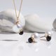 约 8mm 的珍珠旁,点缀着一颗黑色的缟玛瑙,形成俐落的视觉焦点。