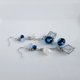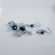 这款时尚的长耳环拥有迷人的圆形造型,镶嵌着充满奇幻色彩的玻璃珠(又称萤火虫玻璃),珠子内部填充着银箔和淡蓝玻璃,链子底部则饰有一颗闪耀的锆石方形耳针。耳夹还点缀着两种小玻璃珠和淡水珍珠。