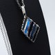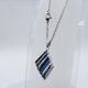 与一般彩绘玻璃不同的是,此作品采用半立体组装,因此与 dichroic 玻璃的色彩变化相辅相成,从斜侧或侧面观赏时,都能展现不同的风貌。