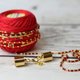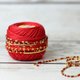 I already strung the beads onto the cotton thread, and you can immediately begin to knit your bracelet