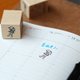 本日印章可以搭配手帐使用。特别计算过的印面大小、印在各种尺寸的手帐上都很刚好、不会过小或过大。图案也特别经过设计、如果能够对准手帐框线盖印,就能呈现出宛如在手帐格子中蹓狗、骑单车、甚至荡秋千等效果、有种小小世界的感觉唷。