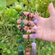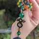 琉璃绿挂饰的主珠为绿玛瑙,配以黑玛瑙环,和水晶、玛瑙小珠。