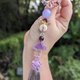 错色紫云灰挂饰的主珠为紫玉,配以象牙果扁珠,以及水晶、琉璃小珠,和紫玉小珠。