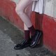 - 灵感以Grunge style风格打鞋面配件细节包括金属扣子/圆钉/方形的鞋头轮廓 皮革甄选了油蜡皮/漆皮/小牛皮/马毛等等多种物料打造。