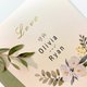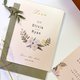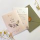 这款是以呜呜所画的花束为主角,因为呜呜老师的花的作品总是呈现出淡雅的气质,所以在思考用什么样的方式把鼻子的插画和水彩结合在一起,想了很久,决定用线条来表现,更能衬托出这份喜帖的质感,对于这份喜帖的成品喜欢不已。