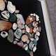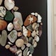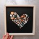 A heart made of shells of various shapes, sea glass and stones in a box of shadows emphasizes the naturalness and organic nature of their beauty.
