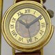 This model combines Roman numeral engraving on the dial, classical case design, and antique brass texture.