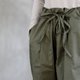 isica 的腰间蝴蝶结绑带茧形气球裤。使用硬挺帆布制作,适合天天穿搭。