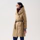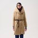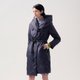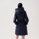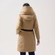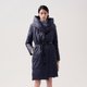 大大的帽子与右襟设计,有如爱斯基摩人或青藏高原的御寒保暖外套,充满异域民族风情,让这件长版羽绒衣极具特色。