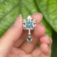 主石选用了经特殊切割的六角形托帕石,象征雪花在落地前的初始冰晶结构。整体设计以微雾面质感呈现外型卷曲的线条,营造出柔和且轻盈的视觉效果。垂坠的花纹上雕刻了亮面的金属细节突显层次感。这项设计不仅捕捉了雪花结晶的对称与纯粹之美,也将稍纵即逝的瞬间化为永恒。