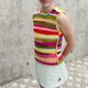 一件完美的复古风无袖毛衣,为您的衣橱锦上添花。 条纹羊毛背心,手工打造,色彩鲜艳。 手工制作 成分 - 羊毛 无袖款式 亲肤 常规版型 短款长度 可持续时尚 XS码 仅可手洗