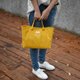 这款托特包上缘使用较特别的内袋往外折的制作方式做收尾,一方面可增加袋身的挺度,一方面还多了层次。