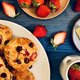 新鲜草莓与巧克力豆加入司康烘烤,品尝酸与甜的最佳平衡。