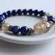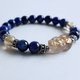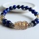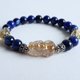 材质:天然矿石 顺板钛豼貅 . 蓝晶石 925纯银刻纹珠 . 日本弹力丝线