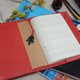 革制书衣附有一个拉链袋,可以放卡片、贴纸、笔,另一面也有夹层方便收纳明信片等小物。