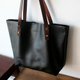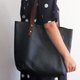 Classic Black Leather Tote Bag / Simple Horizontal Black Tote