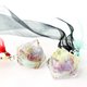 It is an earring which confined in the dome type brillion, lame, self-made parts etc, and further confined in Pentagon type with crystal resin.