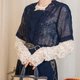 ●**023 淡蓝卷纹**/ 圆领,钮扣式,腰部松紧,袖口打折设计且有装饰扣,篓空缇花布料,上身微透肤,无特殊明显瑕疵
