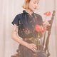●**E03 油画花卉**/ V领,领口有绑带,钮扣拉链式,雪纺材质,腰际松紧,无明显瑕疵。
