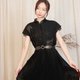 ●**E09 黑色雕花**/ 一般领,钮扣拉链式,腰际松紧,雪纺材质,下摆百折裙,上身无内衬透肤,无明显瑕疵。