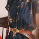 ●**E01 植物图腾 深蓝色**/ 圆领,钮扣式,雪纺材质,腰际松紧,上身无内衬微透肤,无明显瑕疵。