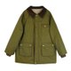 直筒宽松的版型,长度盖过屁股,面料是防水的,摸起来很顺滑,内里是夹棉,抗风又保暖。这个绿色是橄榄绿,明度不高!还挺显白的~拼接了咖啡色灯芯绒面料的领子,和袖口的螺纹相呼应。喜欢小男孩感的穿搭就可以随意搭配,因为单一件就足够帅气。想要凸显女孩的柔和俏皮就可以选择搭配柔软的内搭,再加上女性化的配饰去中和~大胆一些的女孩更可以在里面穿上红棕色系的裙子,会是很有趣的尝试!