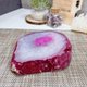 天然玛瑙切片染色,每片都是独一无二的纹路,清澈、抽象、绮丽,经过精心打磨,边缘保留了原始的样貌,展现石头的天然韵味和本色,独特又出色的纹路更有视觉吸引力,在国外是时尚的家饰品,也可做为卡片与任何活动装饰。