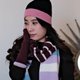 100%纯新绵羊毛 - 女士混合条纹围巾,附赠帽子和指套,时尚色彩。