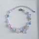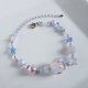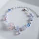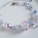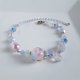 主珠是一颗美丽的玻璃珠,淡粉粉红底座上有花卉图案,珠子是可爱丰满的泪珠珠、粉红、蓝和白火抛光捷克珠和玻璃珠,全部以独特的设计精美地抵消,打造出非常时尚的手镯。
