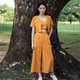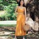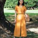 - MUSTARD YELLOW WIDE CROP PANTS WITH BACK SMOCKING